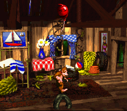 Two unique rooms can be visited - DK's Treehouse (which holds a red balloon), and just underneath, his banana hoard.
