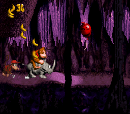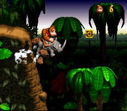 You can get results with either Kong, but DK's the best for a laugh, so be sure to have the big fella handy. Leave Rambi at least half a screen away from the wall, then throw the keg so that it bounces back, and ride it over to Rambi, holding Y. When you are beside Rambi, press B, then immediately release Y. If all goes to plan, Rambi will transform into a darker or 'metal' DK clone, and DK himself will start thrusting away atop his self-resembling steed!