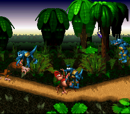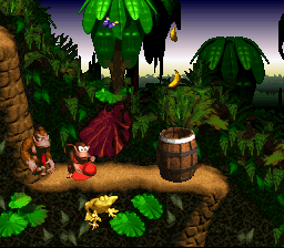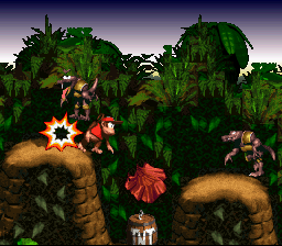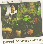 After running, swinging, bouncing and paddling through the last four levels, the DK duo arrives at Barrel Cannon Canyon. This third jungle journey offers the Kongs their first true barrel blasting experience as they hurtle through the densely vegetated canyon. Propelled by this rather convenient array of barrel cannons, a savvy simian can breeze through the whole level without hardly even setting foot on the ground or dealing with the baddies.