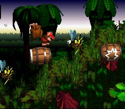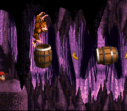 Although the barrel cannons make for quick way to get around in this level, a few minor detours are required to locate Barrel Cannon Canyon's two bonus areas, which are located a few screens either side of the mid point.