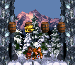 Though the Kongs have gone far in their journey across DK Island, the dizzying heights and frigid waters of Gorilla Glacier make the lush canopy of the previous world seem like a distant dream. There is little time for dozing off, though, as the barrel cannons here will keep things at a busy pace. Even the locals can feel the difference; not a single enemy is lying around in this place! Swooping Neckys and angry Zingers are poised to give our duo a not-so-warm welcome.