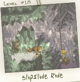 Lined with sparkling crystals, the mountain's caverns are a beautiful refuge from the blizzard outside. Unfortunately, Donkey and Diddy didn't come here for sight-seeing. A deeper look into the cave will reveal a treacherous labyrinth crawling with creepy Kremlings and other baddies. On top of that, the footing is poor and the ropes are slicked with ice! There's not much time to ponder the next move in these caves. However, a keen-eyed adventurer might spot a quick escape.