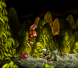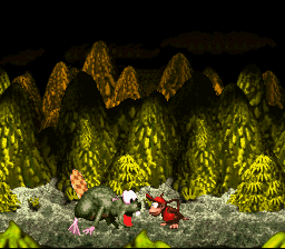 When DK or Diddy hits Very Gnawty with a roll attack, they are knocked back a fair distance. However, pressing JUMP the moment the roll attack connects will make either Kong leap up instead of being knocked back. The timing is critical, and very tricky. Jumping too early will cause the lead Kong to be hit, but a late jump will just cause them to be knocked back.