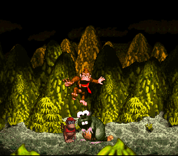 If you find yourself cornered, give this a try; just tap 'Y' rapidly to hit Very Gnawty repeatedly with your roll attack. If all goes well, you will bounce off of him safely, and he'll head back the way he came, giving you plenty of time to plan your next move.