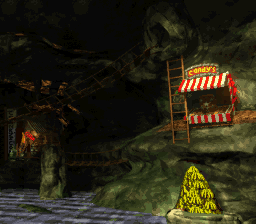 Misty MineThe mines of Chimp Caverns are much quieter than the Kongs' previous excursions. The tranquility belies its real danger, however; lots of natural enemies are prowling the remnants of the mines, and the Dumb Drums lying around will ensure that there's no short supply.