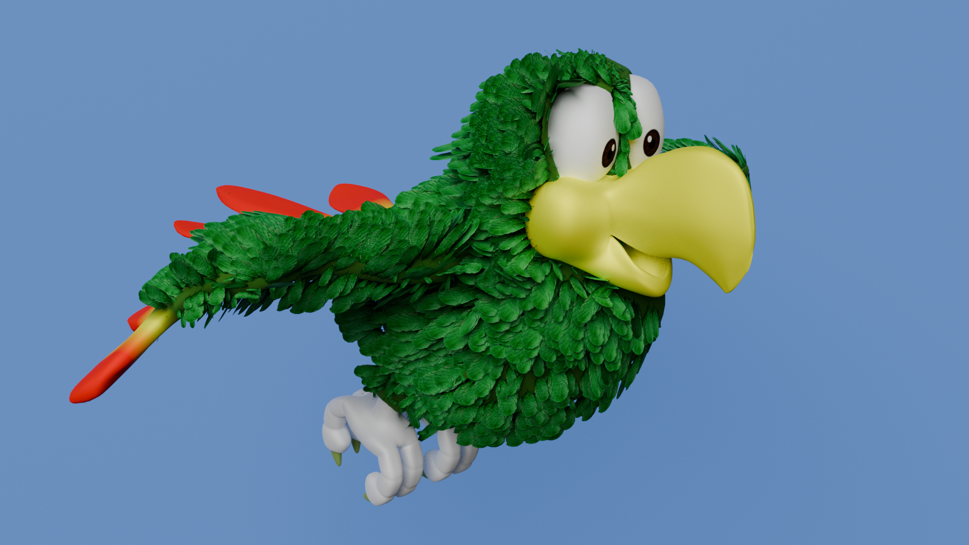 Really cool to see the program handling specific feathers and not just a texture, I think he would look better with all feathers flowing the same direction. The renders from Dkc2 it almost looks like hairs instead of feathers, but maybe thats a limitation of the 90s hardware.