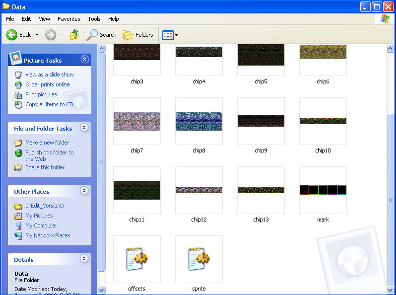 I have some pieces of code that could accomplish this -- however, the code would likely not work because I'm not using Borland compiler (which isn't exactly standard anyway, it does have some proprietary non-C++ functions/code/classes/etc). I don't understand the way the files are structured, either.Kong-Fu wrote:-Making a picture of the object show up instead of those red squares.
