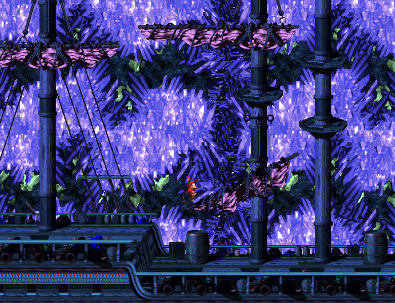I'm also attempting to add some water in the level, but I'm not sure how that will work out. The DKC2 ship water levels are just boxes, barrels and chests, which won't work for under the ship. I was maybe going to try to do ocean bits from croctopus chase.