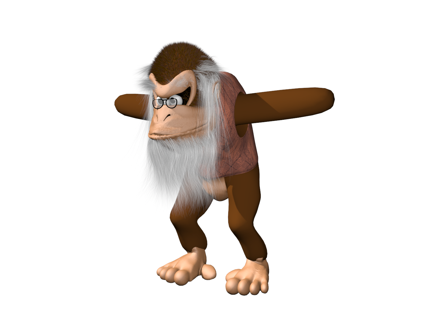 Here is a turntable of a near complete Cranky. The fur was just thrown on and needs to be combed like I did with Donkey Kong. Oh and I need to make his hands look old like in the original DKC.
