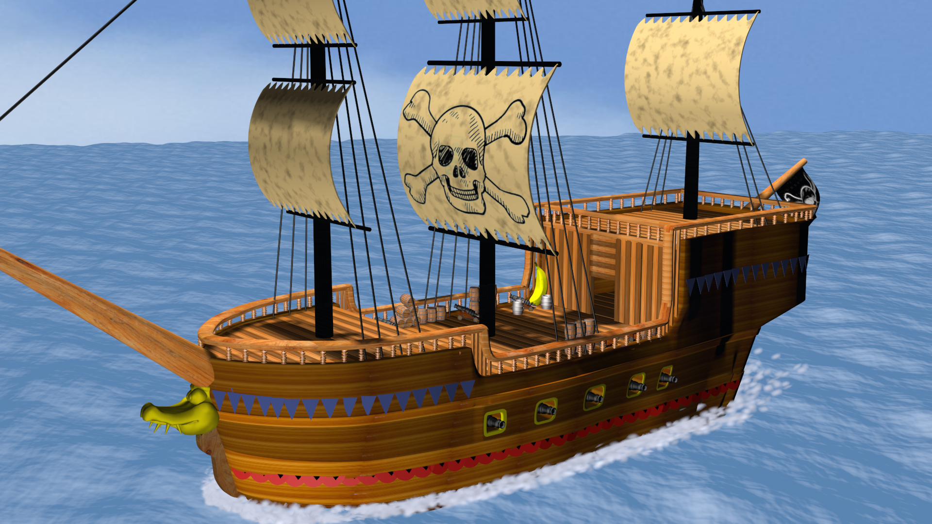 Phyreburnz wrote:I know that the DKC 2 ship has only one sail per mast, but I suggest adding some more, like having two per mast on the front two masts. Having just one sail per mast seems a bit more cartoony to me.