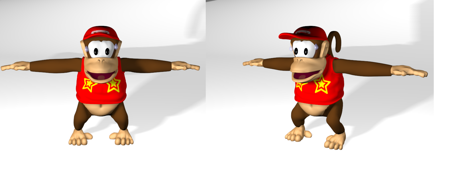 CatLoverMolly wrote:As long as y'get the stars aligned and the fur to have DK's fur effect, I should think that we're good. Other mminor nitpicks include the angry face, and maybe his arms? They're a bit too thick and they look like sleeves.