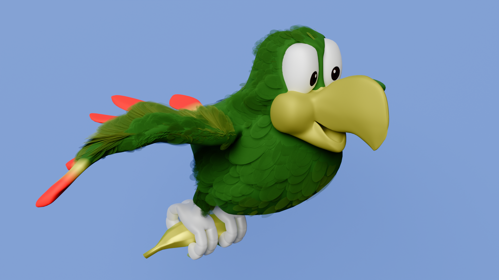 Really cool to see the program handling specific feathers and not just a texture, I think he would look better with all feathers flowing the same direction. The renders from Dkc2 it almost looks like hairs instead of feathers, but maybe thats a limitation of the 90s hardware.