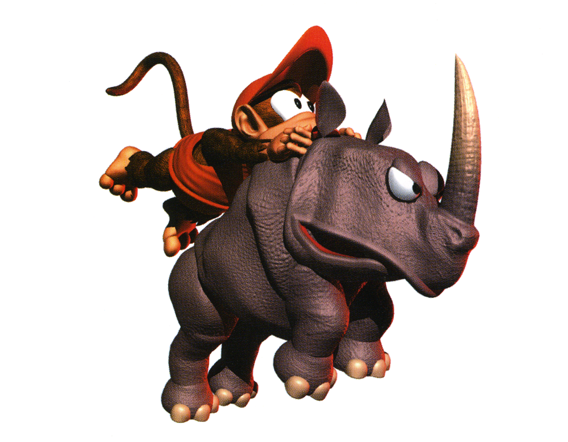 A collection of Donkey Kong Country artworkHome > Gallery > Official Art > Donkey Kong Country > Characters > Animal Buddies > Rambi DiddyOnRambi(small)