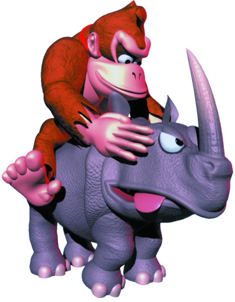 A collection of Donkey Kong Country artworkHome > Gallery > Official Art > Donkey Kong Country > Characters > Animal Buddies > Rambi Donkey_and_Rambi1_a1(gathered_by_Rodent)