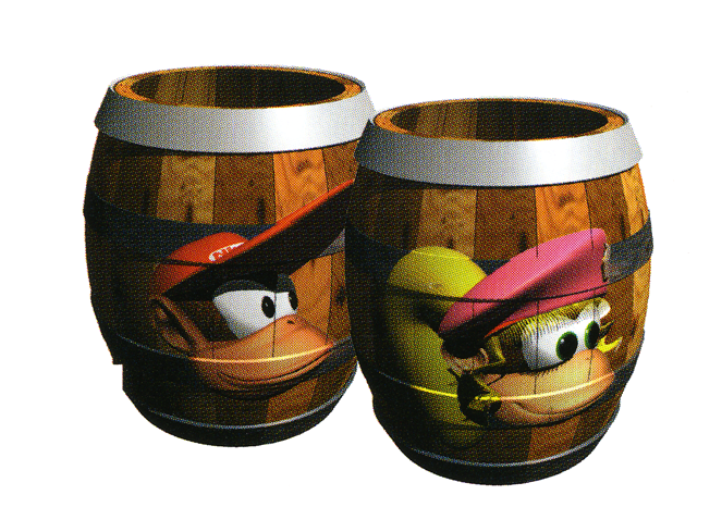 A collection of Donkey Kong Country artworkHome > Gallery > Official Art > Donkey Kong Country 2 > Items Diddy+DixieBarrels